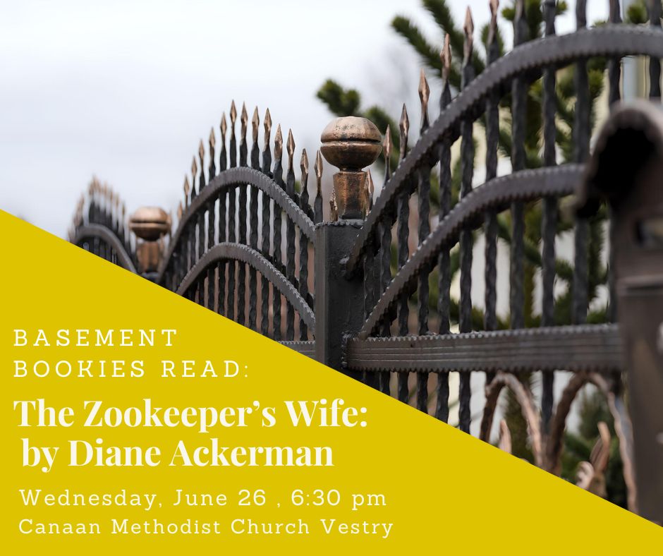 Join us for a discussion of Diane Ackerman’s The Zookeeper’s Wife on Wednesday, June 26, 6:30 pm. We will meet at the Canaan Methodist Church Vestry.