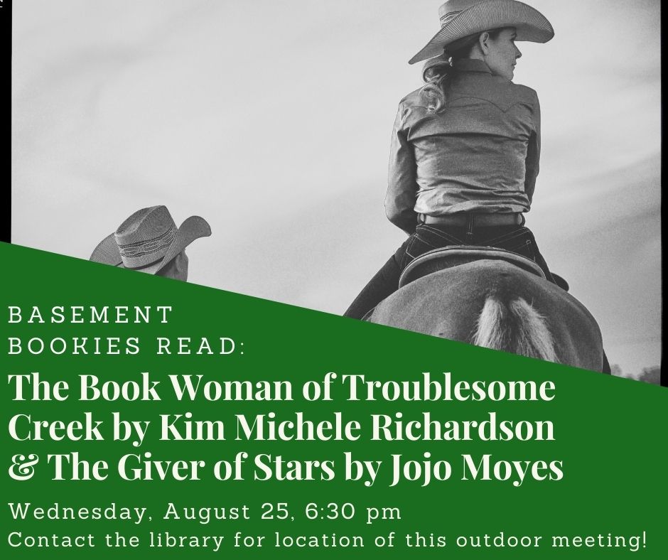 Join us on Wednesday, August 25 at 6:30 pm for a discussion of The Book Woman of Troublesome Creek by Kim Michele Richardson and The Giver of Stars by Jojo Moyes. This meeting will take place at the home of a Book Group member. Please contact the library for more information.