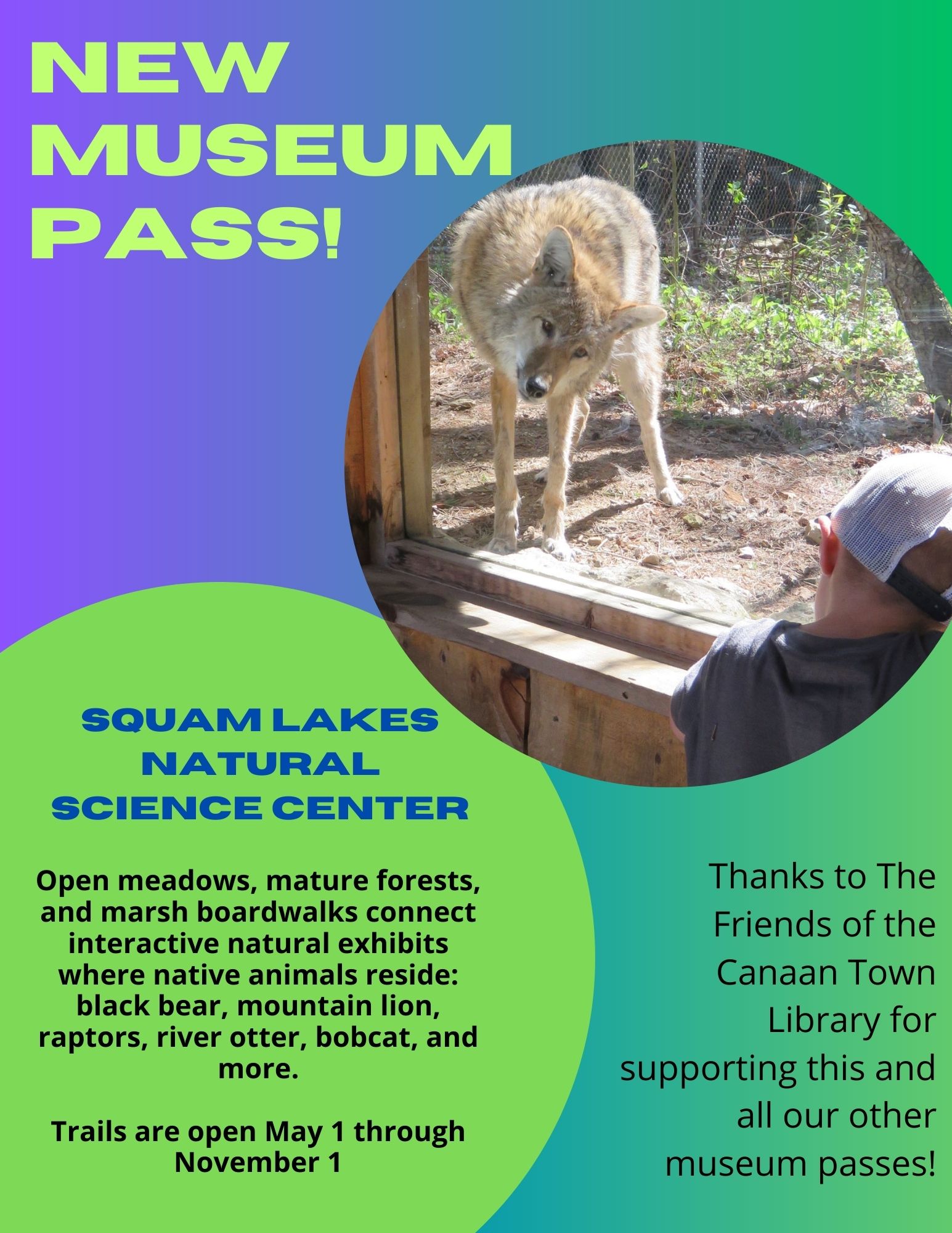 Thanks to the Friends of the Canaan Town Library, we now have a pass to the Squam Lakes Natural Science Center. The trails open May 1. Contact the library to reserve the pass.